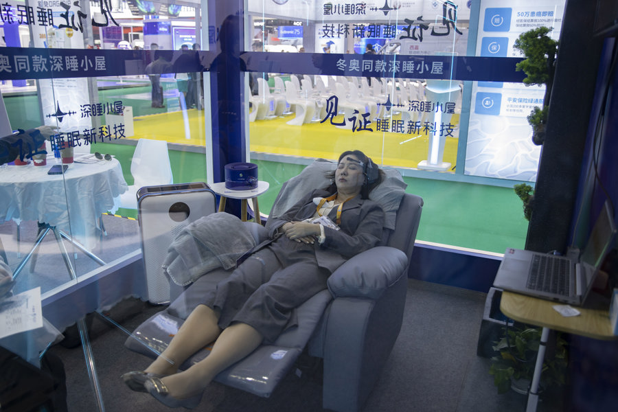 观众在一间深睡小屋内体验科技产品改善睡眠的功效,是无数失眠患者的福音。