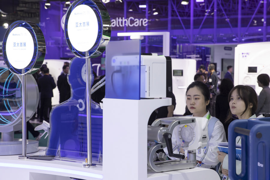 今年进博会,医疗器械及医药保健展区围绕“健康中国,美好生活”主题,聚焦全球医疗行业前沿趋势和热点话题,集中展示国际领先的尖端技术、创新产品和服务。展区设医疗器械、药品、营养保健食品三大板块和健康养老专区,充分展现健康+科技的魅力。请跟随记者去探探医疗器械及医药保健展区都有哪些高精尖的科技。