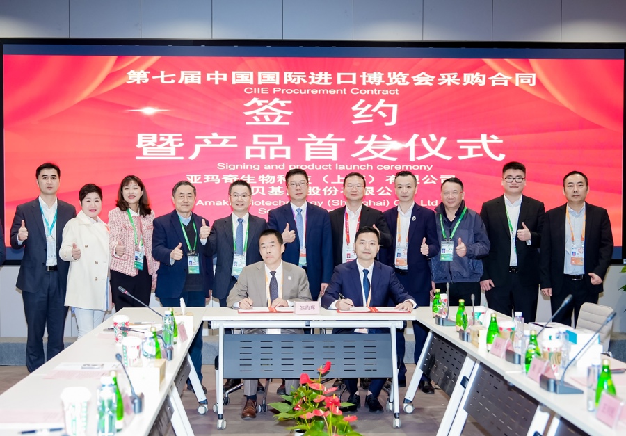 昨日,第七届中国国际进口博览会正式开幕,全球目光再次汇聚上海青浦这座充满活力的城市。今日,落户青浦新城的采购商亚玛奇生物科技(上海)有限公司与参展商索贝基因股份有限公司达成合作,成功签署了3年期共计6亿美元的采购订单。