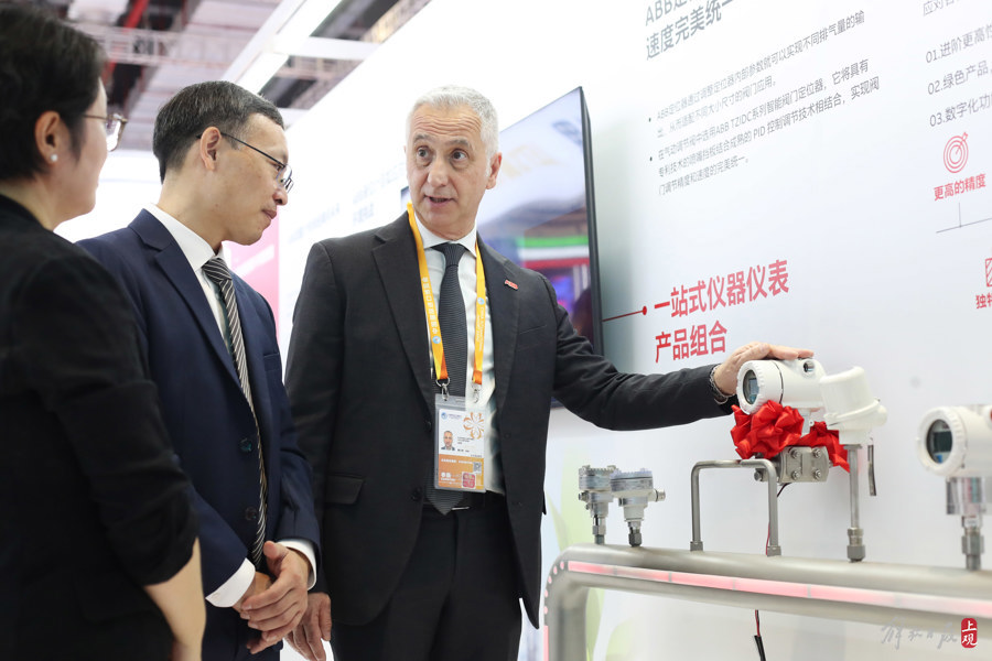 11月6日,ABB展台上,测量与分析全球产品线负责人尤景逸,热情地向客商介绍全球首发的ABB首款绿色高性能压力变送器P-500系列产品。他说,“没时间喝咖啡了,不过好极了,非常乐意这样忙碌着!”