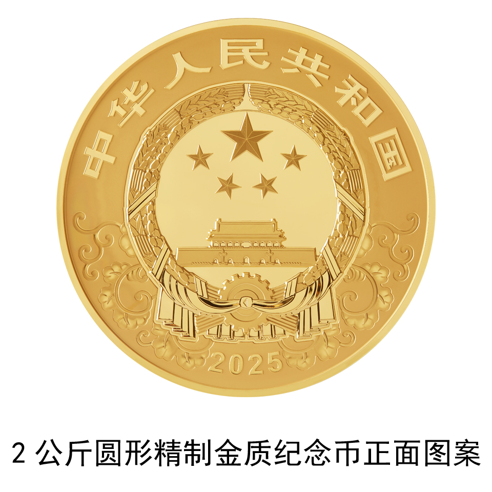 2公斤圆形金质纪念币为精制币,含纯金2公斤,直径110毫米,面额20000元,成色99.9%,最大发行量50枚。