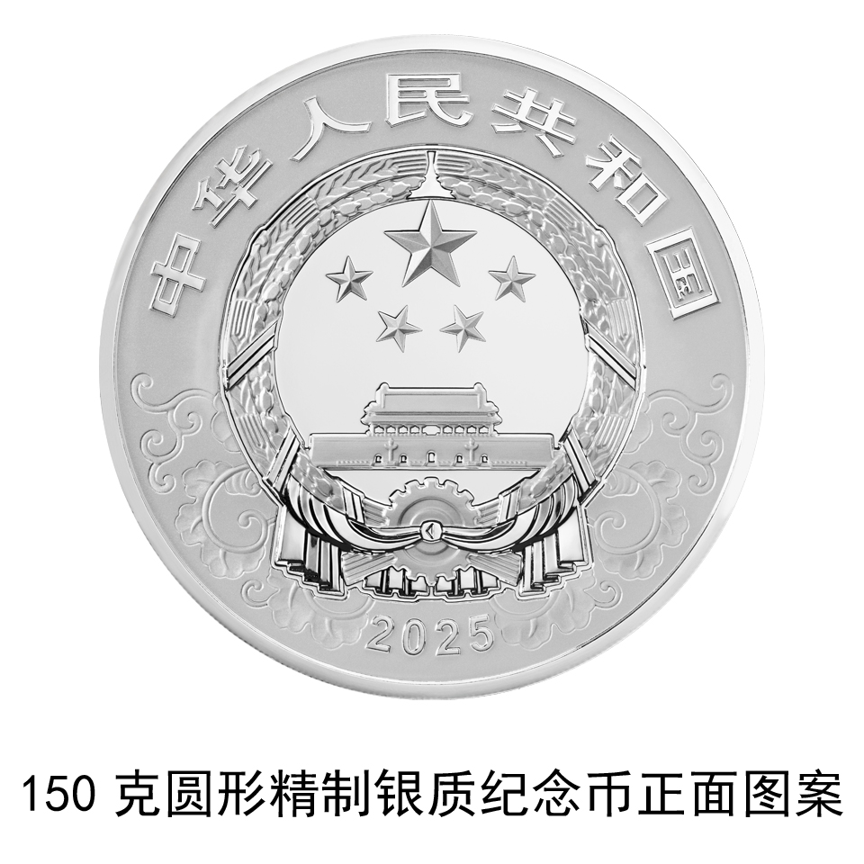150克圆形银质纪念币为精制币,含纯银150克,直径70毫米,面额50元,成色99.9%,最大发行量8000枚。