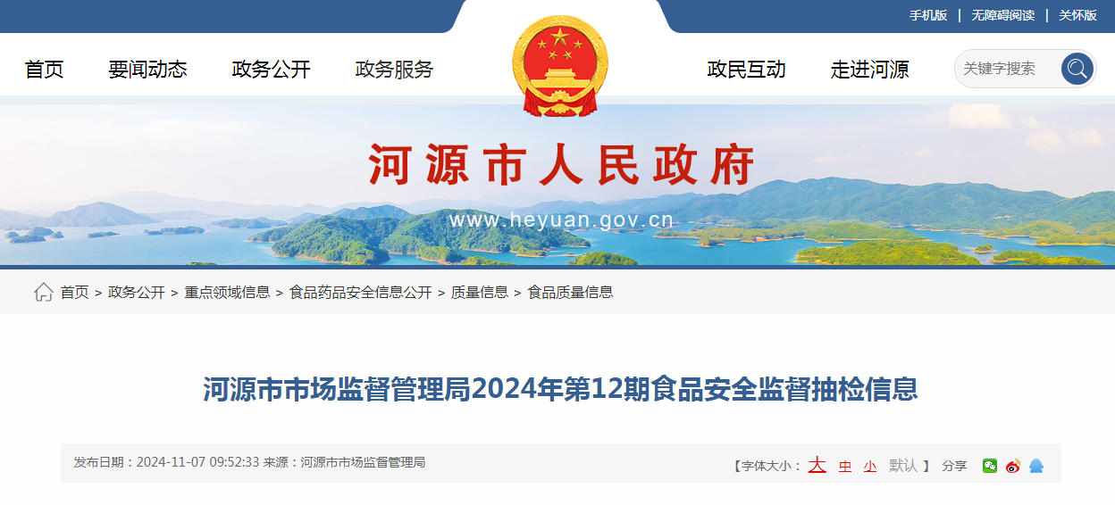 广东省河源市市场监督管理局2024年第12期食品安全监督抽检信息