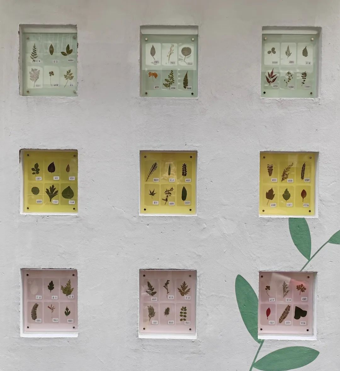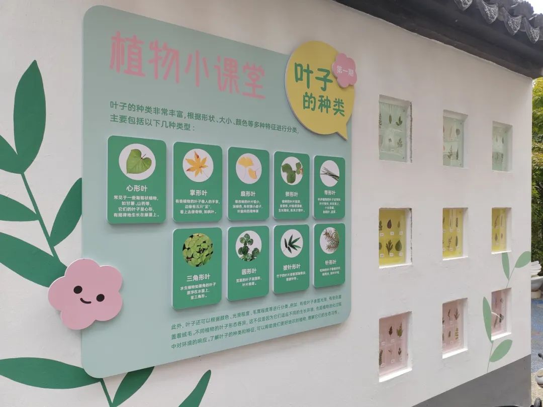 在共享梦花园外的白墙黛瓦上,“植物小课堂”赋予了墙面全新的生命。首期小课堂的主题为“叶子的种类”,墙上不仅介绍了枫叶、银杏、松柏等常见的叶子形状,还收集展示了50余种植物的叶子,供居民们了解叶子的种类和特征,点燃社区居民对大自然的兴趣。