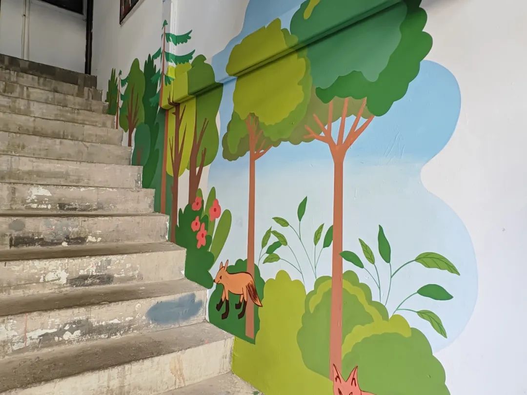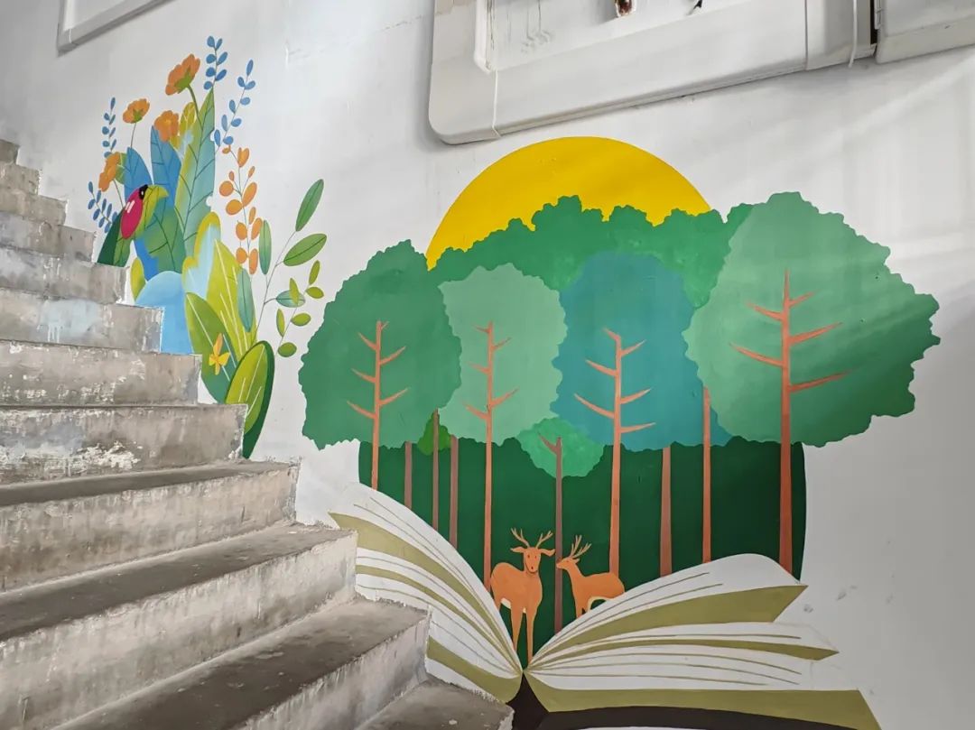 其间,居民区组织社区儿童参与了美丽楼道的打造。在专业老师的指导下,小朋友们在共享梦花园对面的3幢居民楼内,分别围绕春、夏、秋为主题创作涂鸦墙,让美丽的景致从社区延伸至楼道,将“共创社区美好生活”的种子播撒至居民的心田。