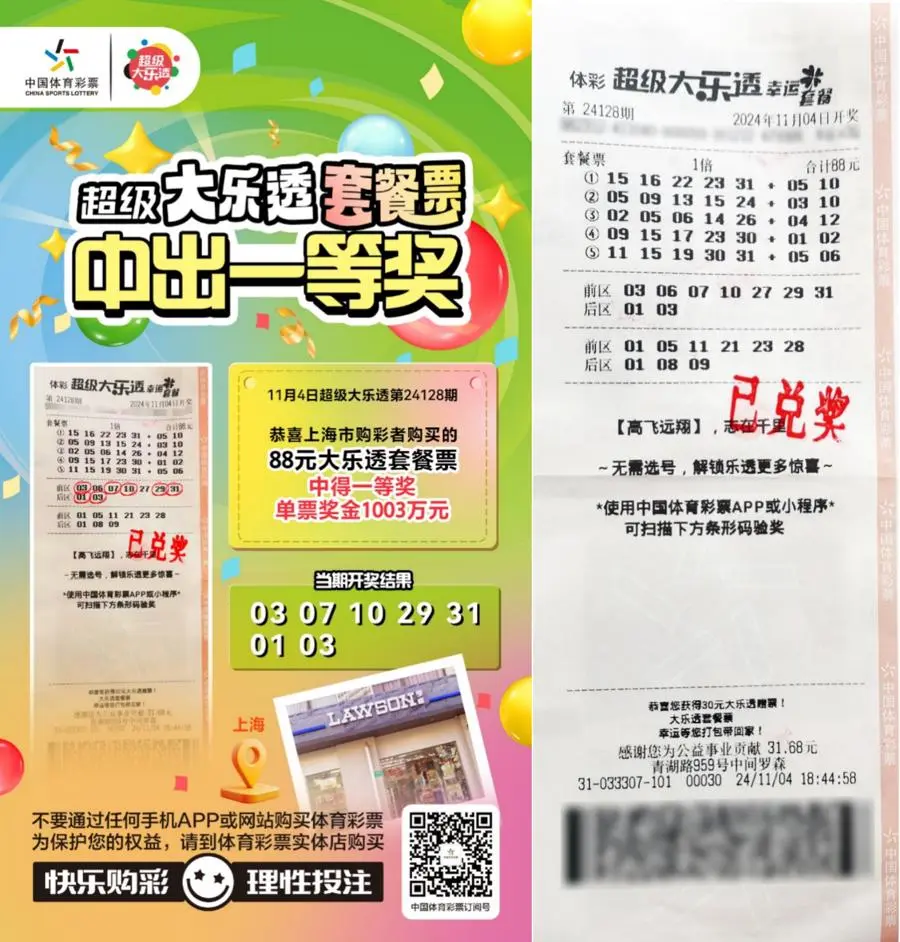 花了88元,上海一男子喜获1003万巨奖!本人透露已有十余年的购彩经历