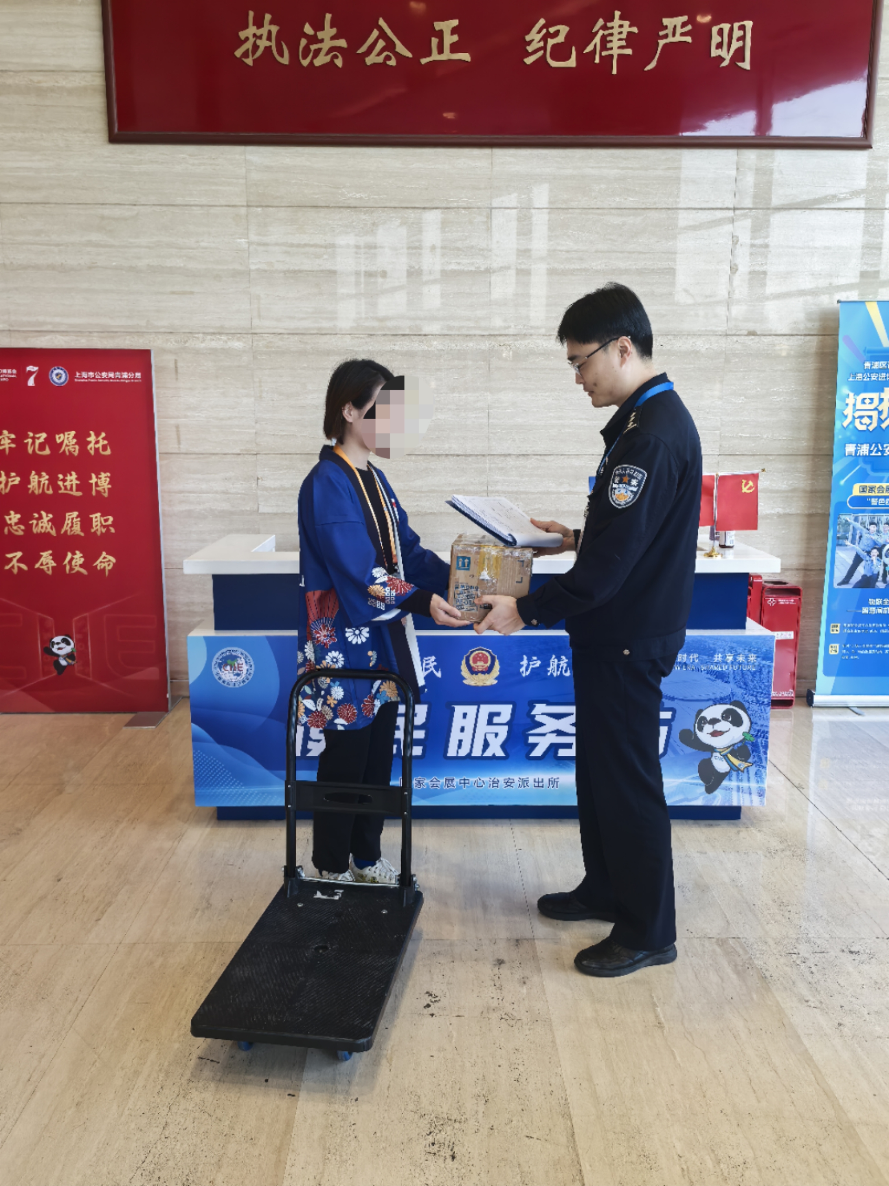 “订书机已收到,没想到在这么大的展会上丢了东西还能这么快找回来!”近日,进博展馆内的工作人员发现了一个被遗落的包裹,上海市公安局青浦分局国家会展中心治安派出所民警通过综合查询,快速确认包裹主人的身份,第一时间联系并发还当事人。