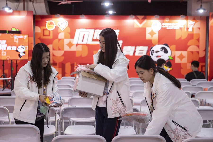 在志愿者之家,主管老师安排萧嘉欣和黄义霖负责文创墙的讲解工作,在干好本职工作之余,两位勤快的香港姑娘总是哪里需要就补位到哪里。“刚刚这里举行了小叶子集体生日会,现场留下了很多气球和生日帽,我和黄义霖收拾一下,把还能用的物料都整理好,下次还能使用,不要浪费了。”萧嘉欣告诉记者,只要眼里有活,在这里还是有很多事情可以做。
