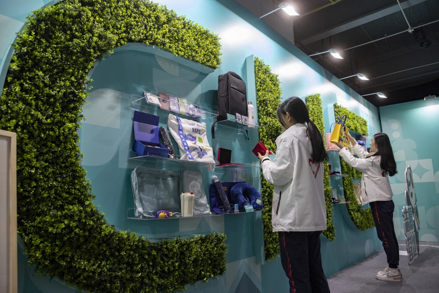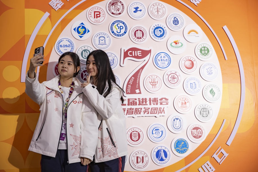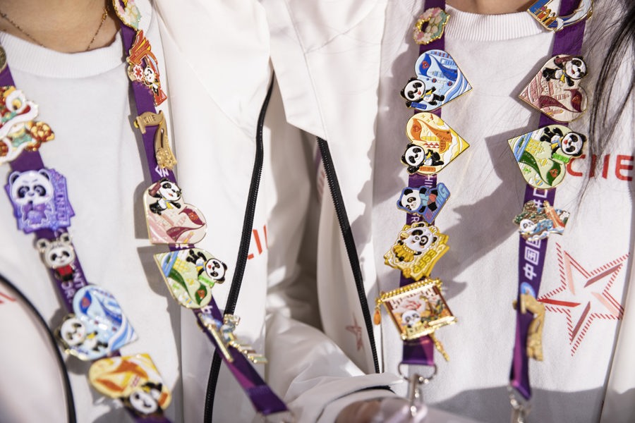“这只熊猫是进博会吉祥物‘进宝’,‘7‘代表着进博会第七届了,这是由上海出版印刷高等专科学校大学生戴嫣设计的志愿者激励徽章……”在第七届中国国际进口博览会志愿者之家,来自香港台山商会中学“小叶子”萧嘉欣向参访嘉宾介绍起文创墙上的各种宝贝。