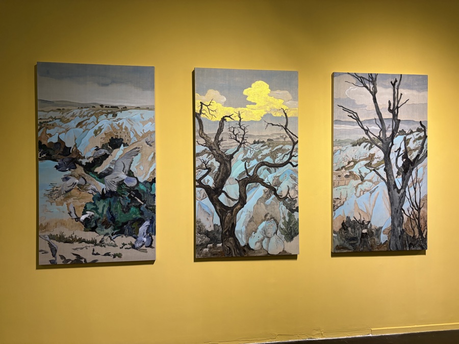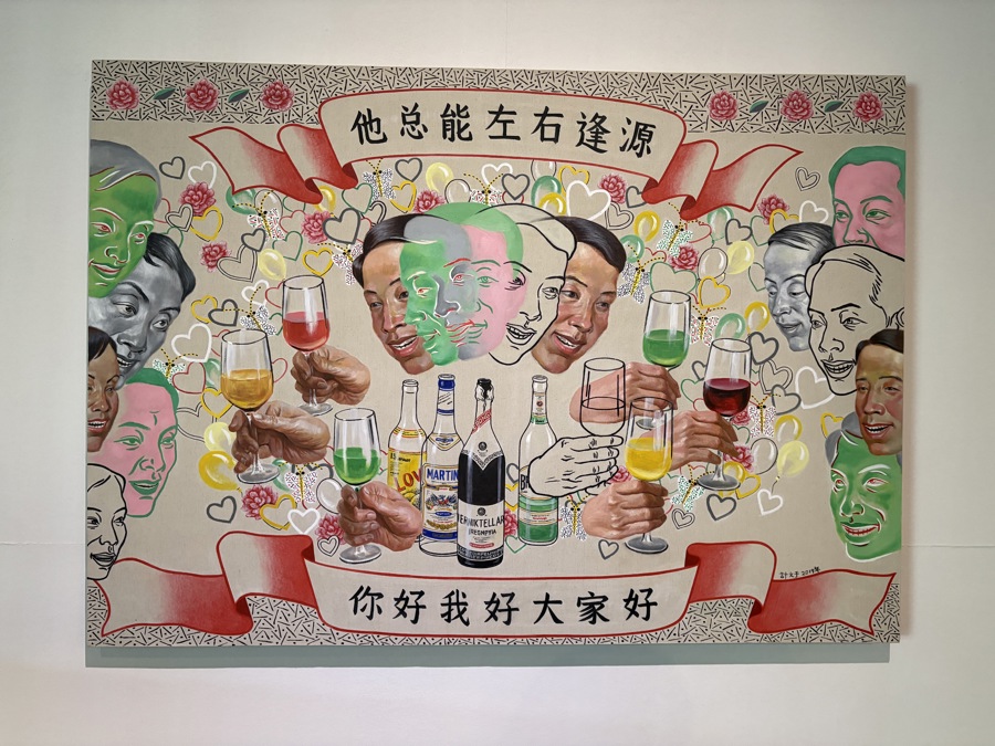 二楼展区,观众可以在张赢的超现实作品《后现代演化论》中体会从遵循社会规训到逐渐异化的多样化面貌。转入音乐独立展间《语言》,金望的作品用音乐的方式去想象一种不存在的语言。接着进入张钊瀛《生存日记》系列,38幅绘画、2件雕塑和1件影像作品共同构成一个“博物馆剧场”。