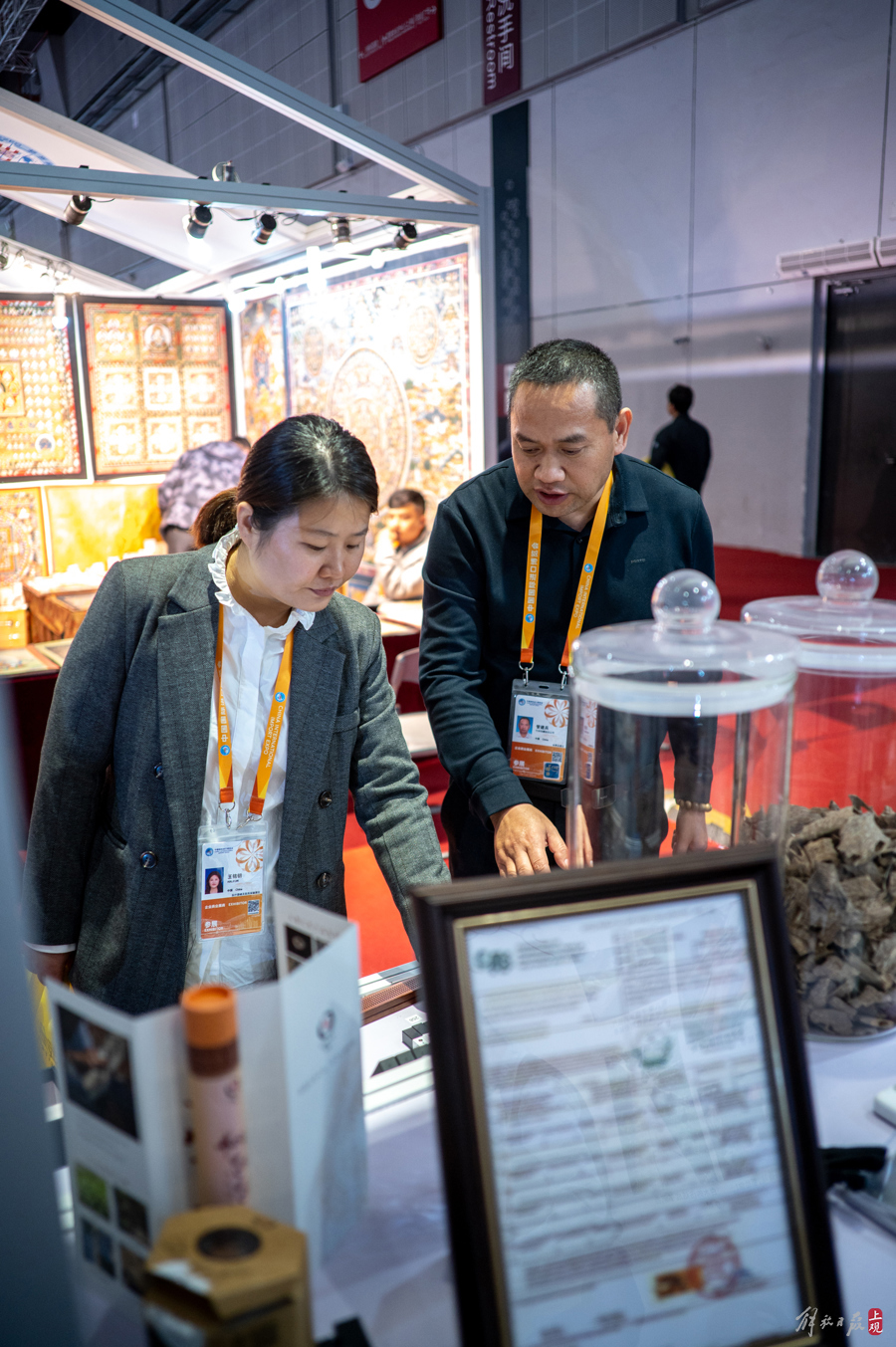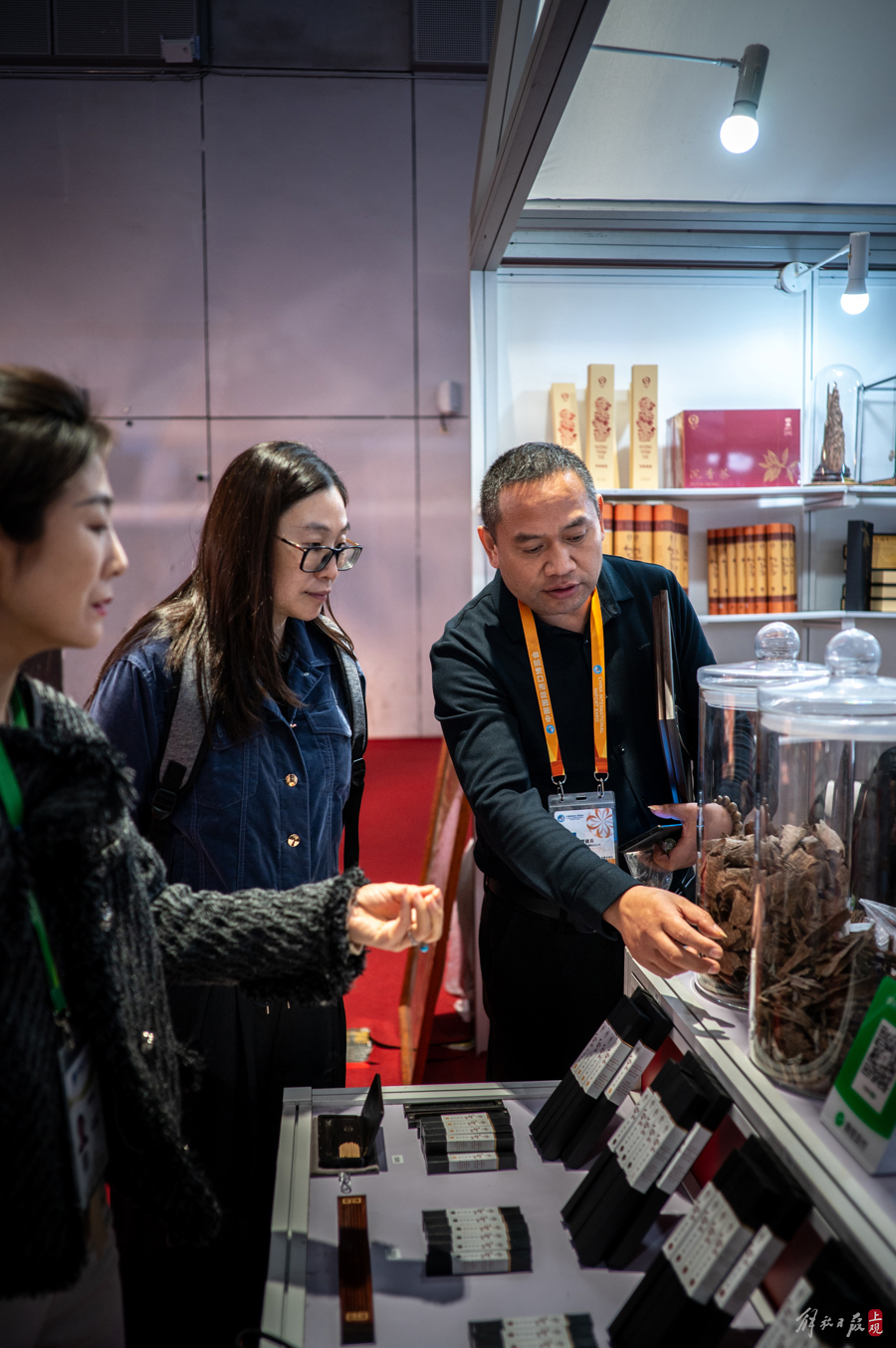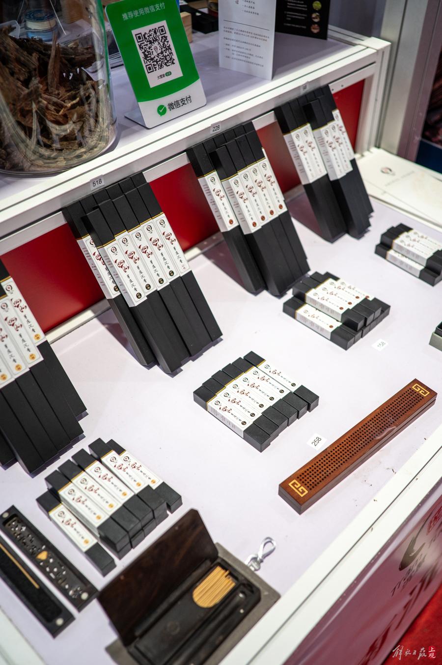 几天的进博会下来,管建兵迎来送往,售出了不少沉香的制品,也交下了五湖四海的新朋友。一个不起眼的小小展位,陈列着总价值过百万的各种沉香珍品,许多人对这里投来好奇的目光。