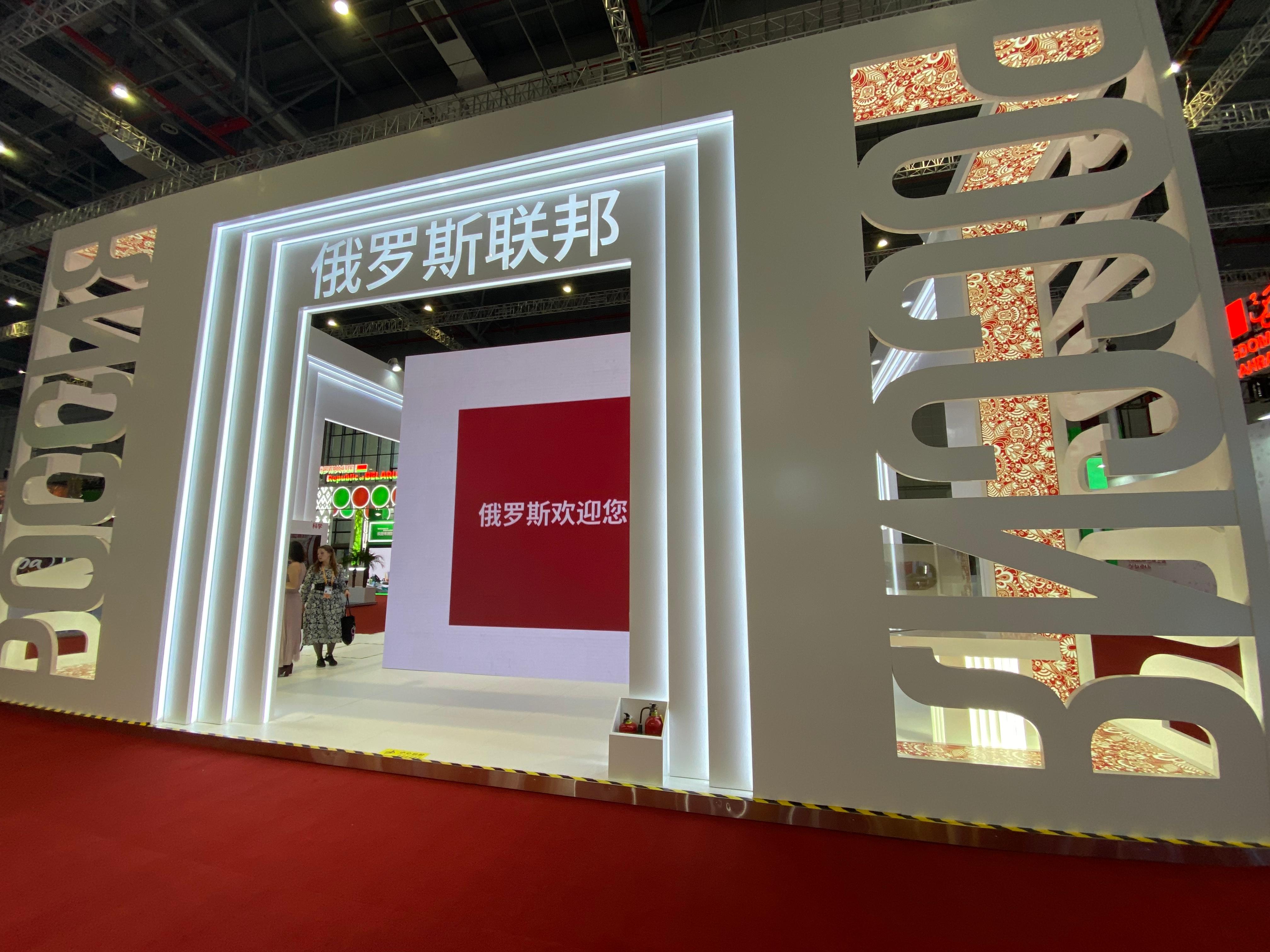 俄罗斯馆打出了“俄罗斯欢迎你”的口号。俞凯 摄