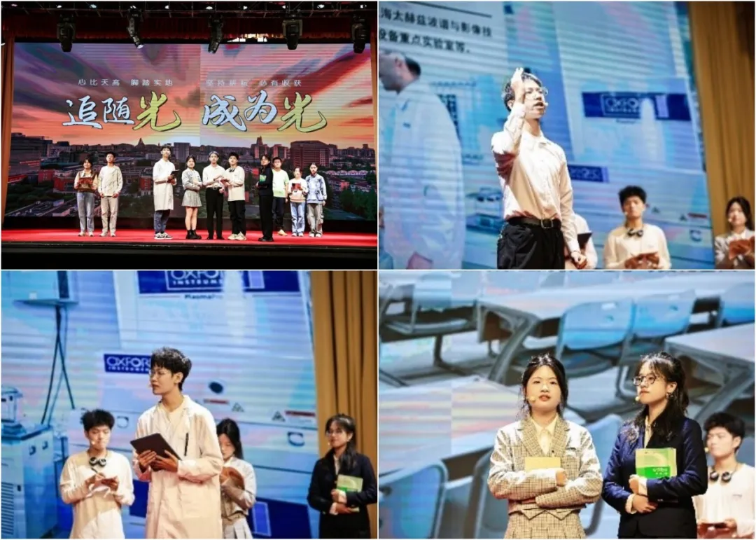 新时代科学家精神,是历史的回响,也是未来的召唤;是爱国、创新、求实、奉献的传统赓续,更是协同育人的时代之歌。论坛上,上海理工大学江畔剧社的同学们为大家带来了自编自导自演的科学家精神舞台短剧——《追随光成为光》。该作品以上海理工大学庄松林院士科研团队为背景,通过讲述在庄院士的引导与带领下,本科生、研究生、青年教师三个群体人物如何做出正确选择,来反映整个科研团队争做科学家精神的弘扬者,肩负起时代重任,一起追随着光,并努力也成为一束光的故事。