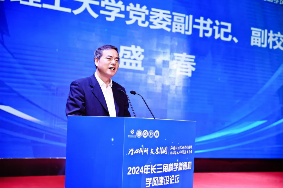 盛春代表上海理工大学致欢迎辞,他指出,科学道德和学风建设是高校办学永恒的主题,是全面贯彻党的教育方针、实现人才培养目标的质量工程。一直以来,上海理工大学高度重视科学道德和学风建设工作,秉持“信义勤爱思学志远”的校训精神,切实回应“建设科技强国、上理何为”的时代命题,为服务高水平科技自立自强和高质量发展贡献智慧与力量。上海理工大学将以承办本次论坛为契机,与大家一起携手共进,推动长三角地区乃至全国的科学道德和学风建设再上新台阶,以中国式现代化全面推进中华民族伟大复兴作出新的更大贡献。