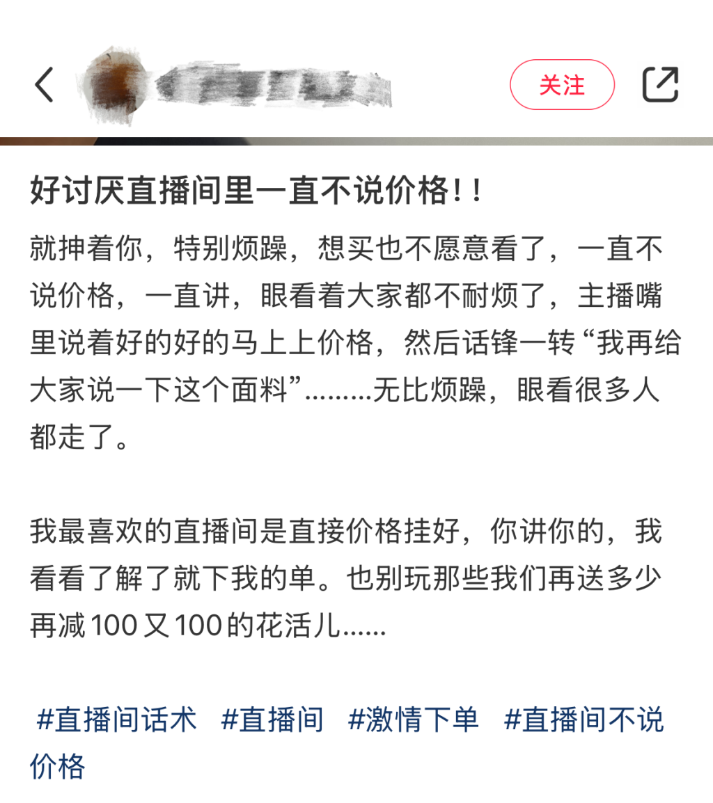 将大把时间花费在直播上的刘娟,消费习惯在2023年转变,“家里出了点事情,我不能一直看手机,刚开始会心慌,因为错过了主播的表演时间。后来我偶尔看看主播的动态,想知道他过得怎么样。现在,基本不看了。时间对我很重要,我讨厌那些太磨叽的直播间,主播介绍半天,商品都不上链接,主播需要用户停留时长,但我的时间成本也是成本。”刘娟说。