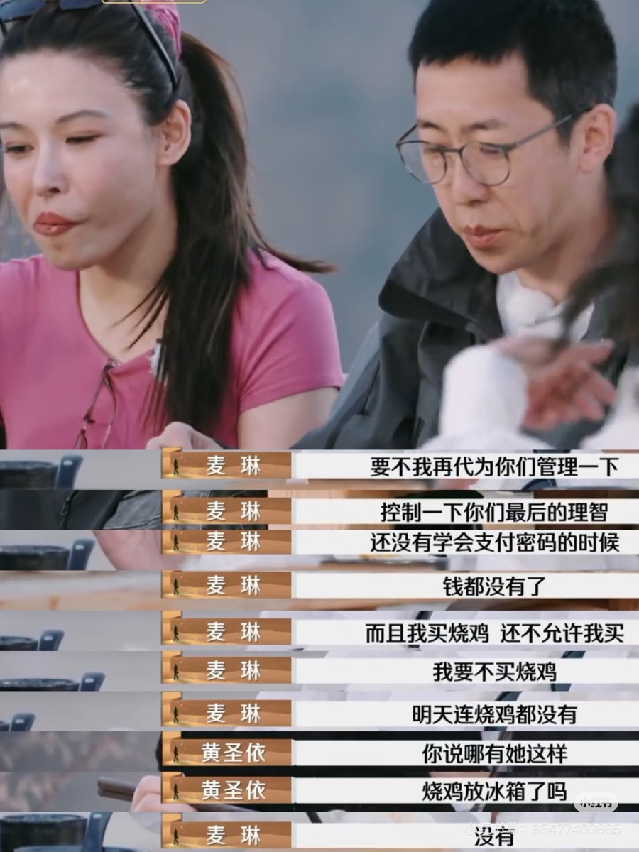 在《再见爱人4》中,三对面临婚姻困境的夫妻共同旅行18天,每对夫妻轮流当导游,用有限的经费负责所有人的日常花销。麦琳当导游时,她极力主张控制预算;但轮到另一对夫妻当导游时,她却在逛超市时提出要买熏鸡和作为零食的奶皮子,并觉得这是自己人生中少有的不用担责任的时候,所以想借此机会“使劲放纵一下”。不仅如此,她还在随后的饭桌上大笑嘲讽“要不我再代为你们管理一下”“钱都没有了”“我要不买烧鸡,明天连烧鸡都没有”。