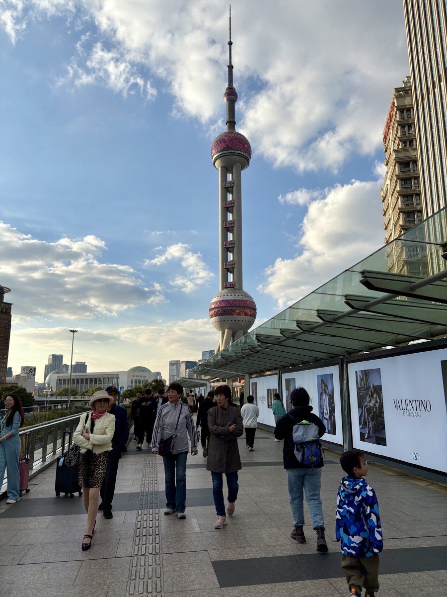 别以为只有外地、外国游客会来,上海人实际上也不少,以中老年为主。城市日新月异,他们也愿意走出家门来看看。令我有些意外的是,在和东方明珠合影之后,一对上海老夫妇往浦东美术馆的方向走了去。