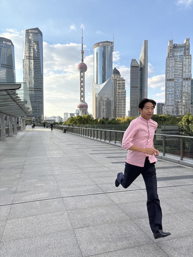 今年65岁的他,主要生活区域就在陆家嘴。遇到他的这个下午,他刚在旁边商场吃好饭,不忘见缝插针地跑一跑,因此没有换上运动装备。