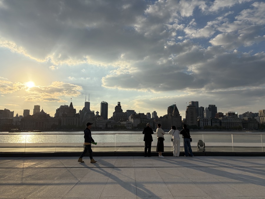 夕阳西下,风景正好,美术馆内外,游客们都把镜头对准了对岸的外滩。
