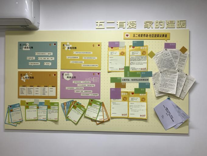微展现场,邻居们三两结伴,在展板前驻足欣赏,不时发出赞叹声。“美好邻声”展现了居民区成立之初发放的101份问卷,了解居民需求,为后续工作开展夯实了群众基础;“我爱五二”吹响了集结号,大家畅所欲言集思广益,确定自治议题范围、流程等内容,进一步调动居民对新社区的期待和治理意愿;“五二有爱”故事会,分享了彼此在社区度过的珍贵记忆点滴和生活感悟......看到这些图片或文字,居民们表示邻里之间的凝聚力和归属感更强了。
