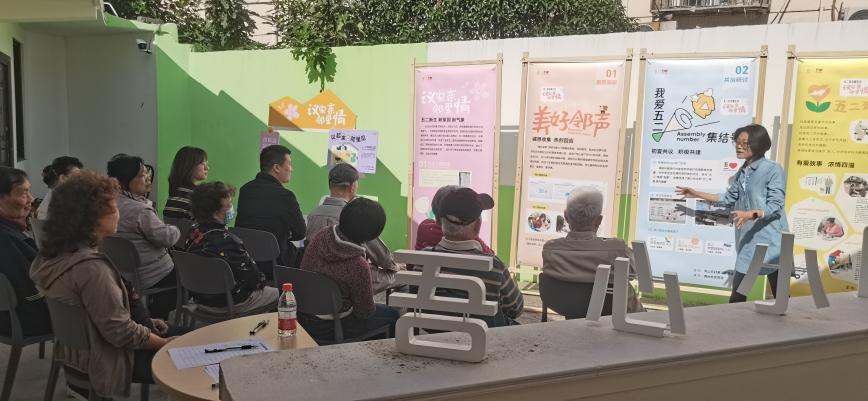 2023年底,仙霞新村街道新成立了五二居民区,最近,居民区的街坊邻居们迎来了期盼已久的自治微展。这场名为“议起来 院里见”的特别展,在五二党群服务站的“吾心小院”里火热展出,该展也是五二居委2024年公益创投“议家亲 邻里情”自治项目的收官活动。