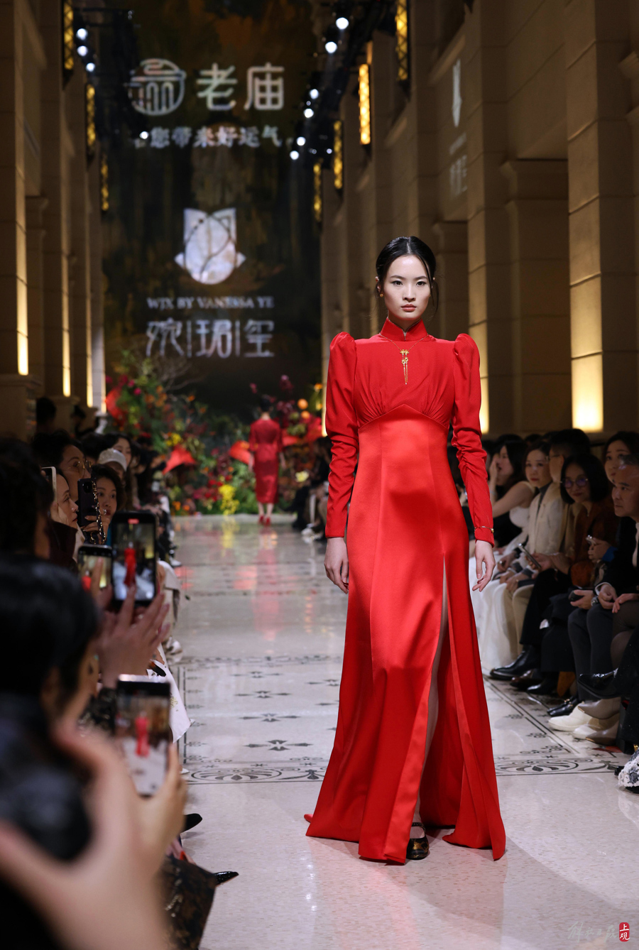 2024年11月12日晚,第十五届上海高级定制周在外滩二十二号开启,老庙联手婉珺玺两大时尚品牌联袂带来的《鹊说新语》大秀为高定周启幕。