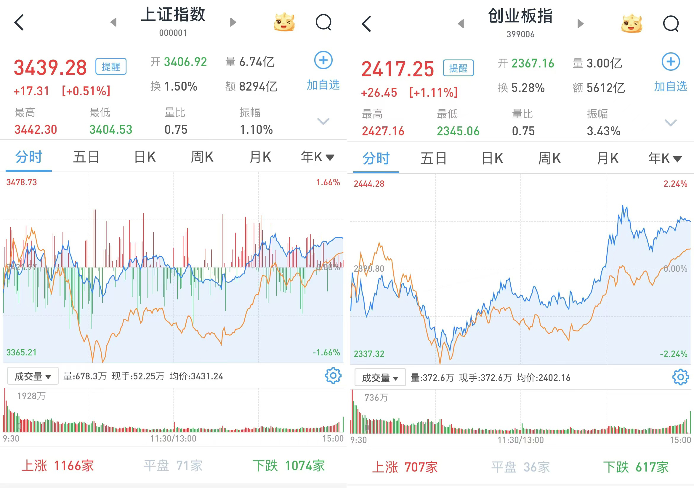 至收盘,上证综指涨0.51%,报3439.28点;科创50指数涨1.03%,报1061.37点;深证成指涨0.4%,报11359.29点;创业板指涨1.11%,报2417.25点。