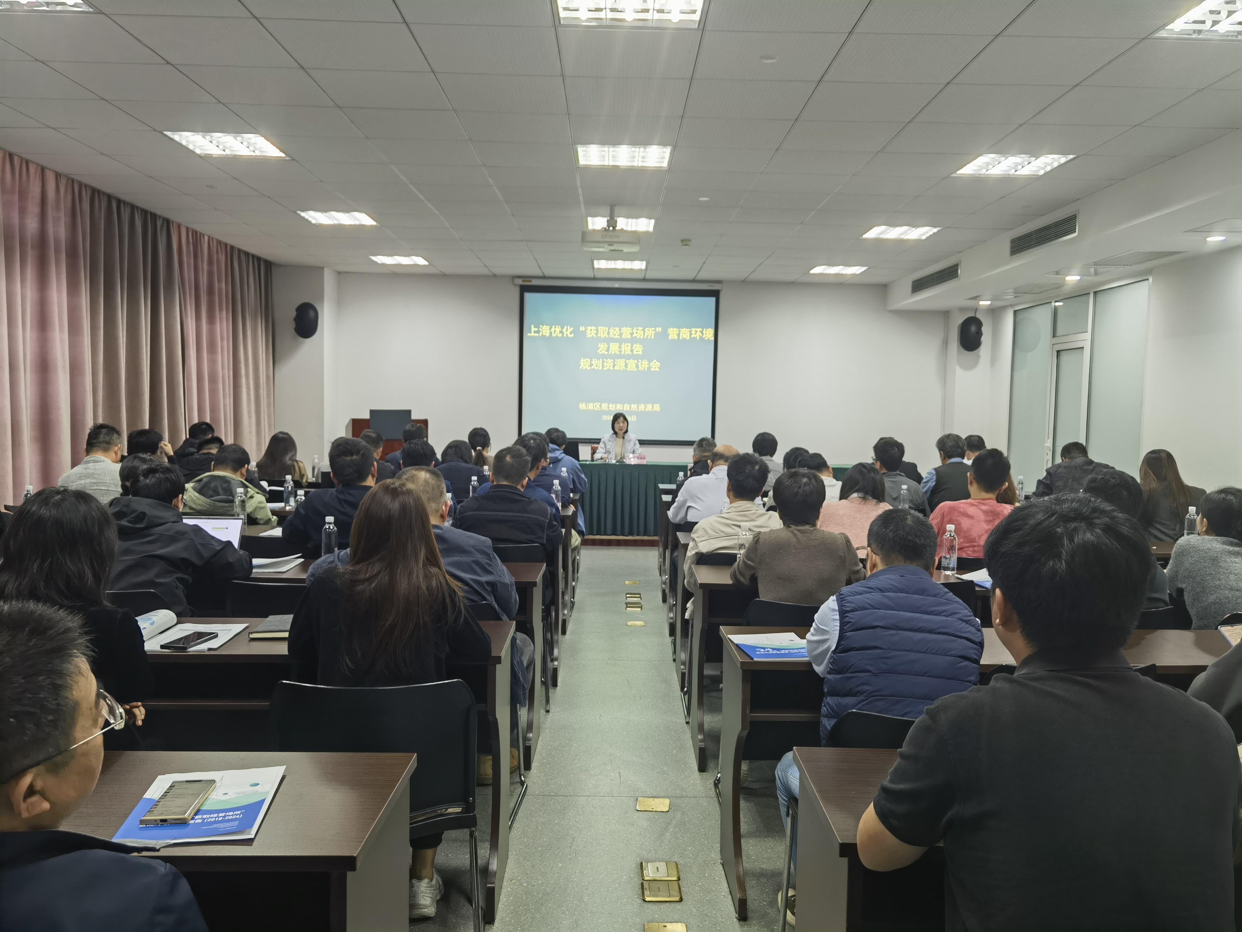 为深入贯彻落实优化营商环境各项部署,落实市规划和自然资源局优化营商环境的工作要求,扎实推进世行新一轮营商环境(B-Ready)评估迎评工作,杨浦区规划和自然资源局于11月6日召开“杨浦区上海优化‘获取经营场所’营商环境发展报告规划资源宣讲会”。中信泰富、抖音集团、合生集团等开发单位,同济大学、复旦大学等高校基建部门,电力、信息等市政管线建设单位,区属国企及十二个街道近六十家单位的代表参加会议。