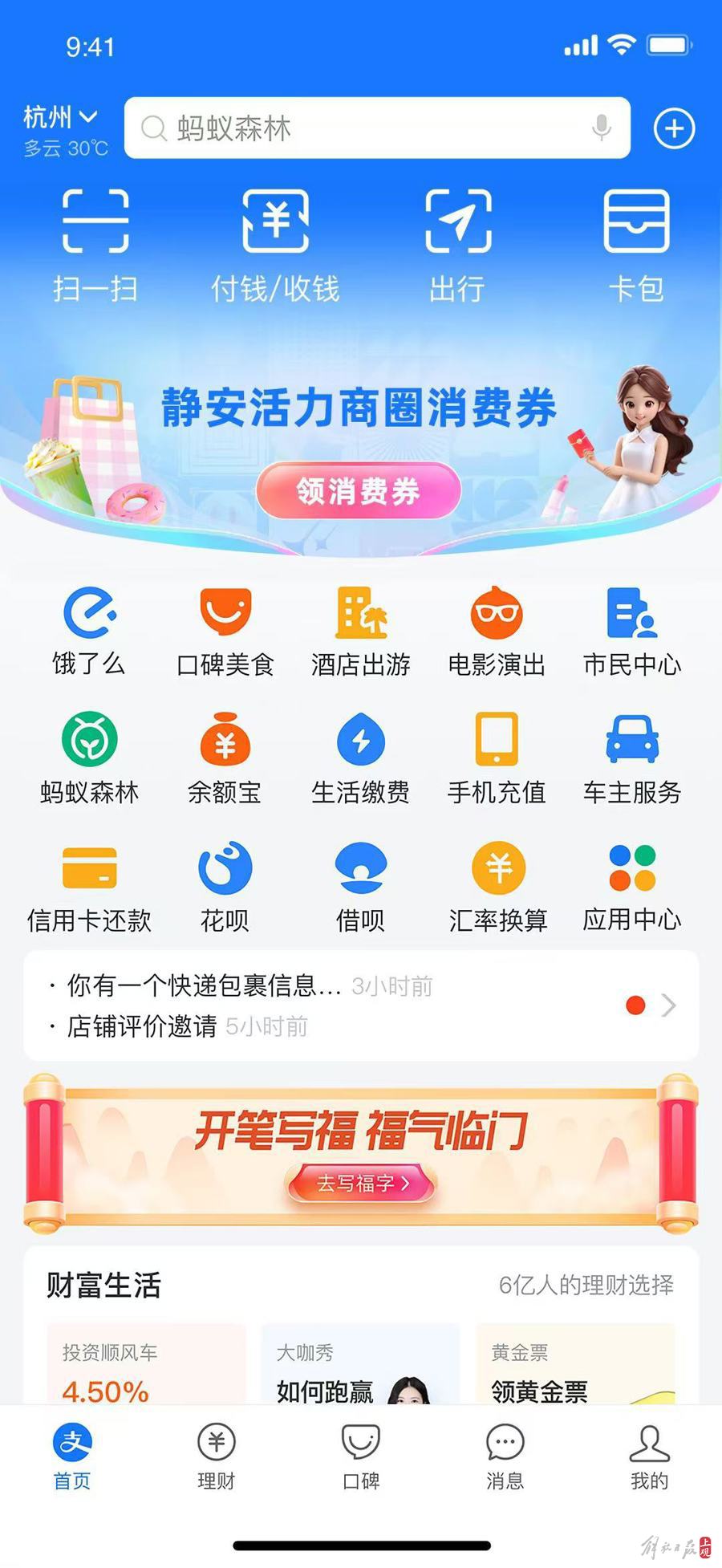 消费券采用“先到先得”的活动形式,发完即止;点击支付宝首页活动入口,进入活动页面领取或在首页搜索“静安消费券”“享购静安”“静安有礼”。