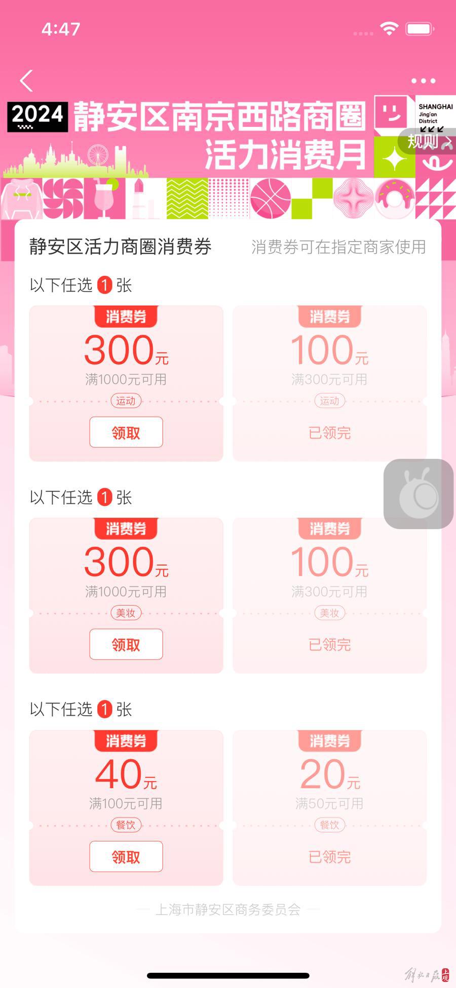 位置信息定位在上海的消费者均可领取“静安消费券”。