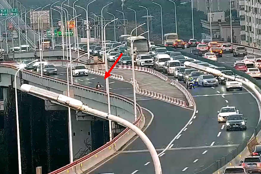 接到指令后,民警迅速驾驶警用摩托车前往。其间有南浦大桥一拖车驾驶员看见该男子在高架上行走,试图拦截该男子,但被其挣脱后继续向前行走。