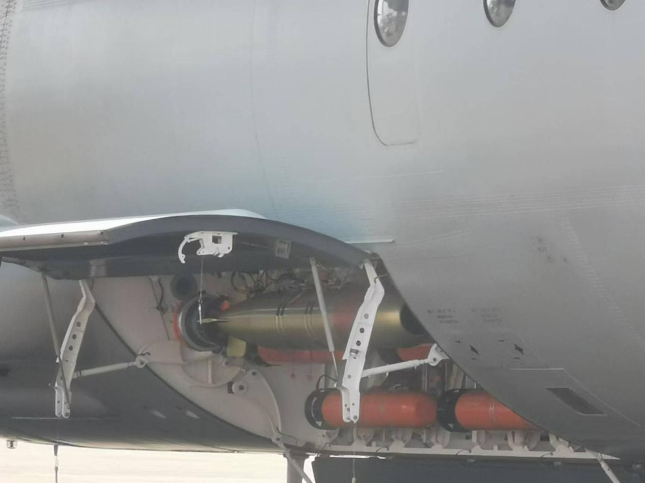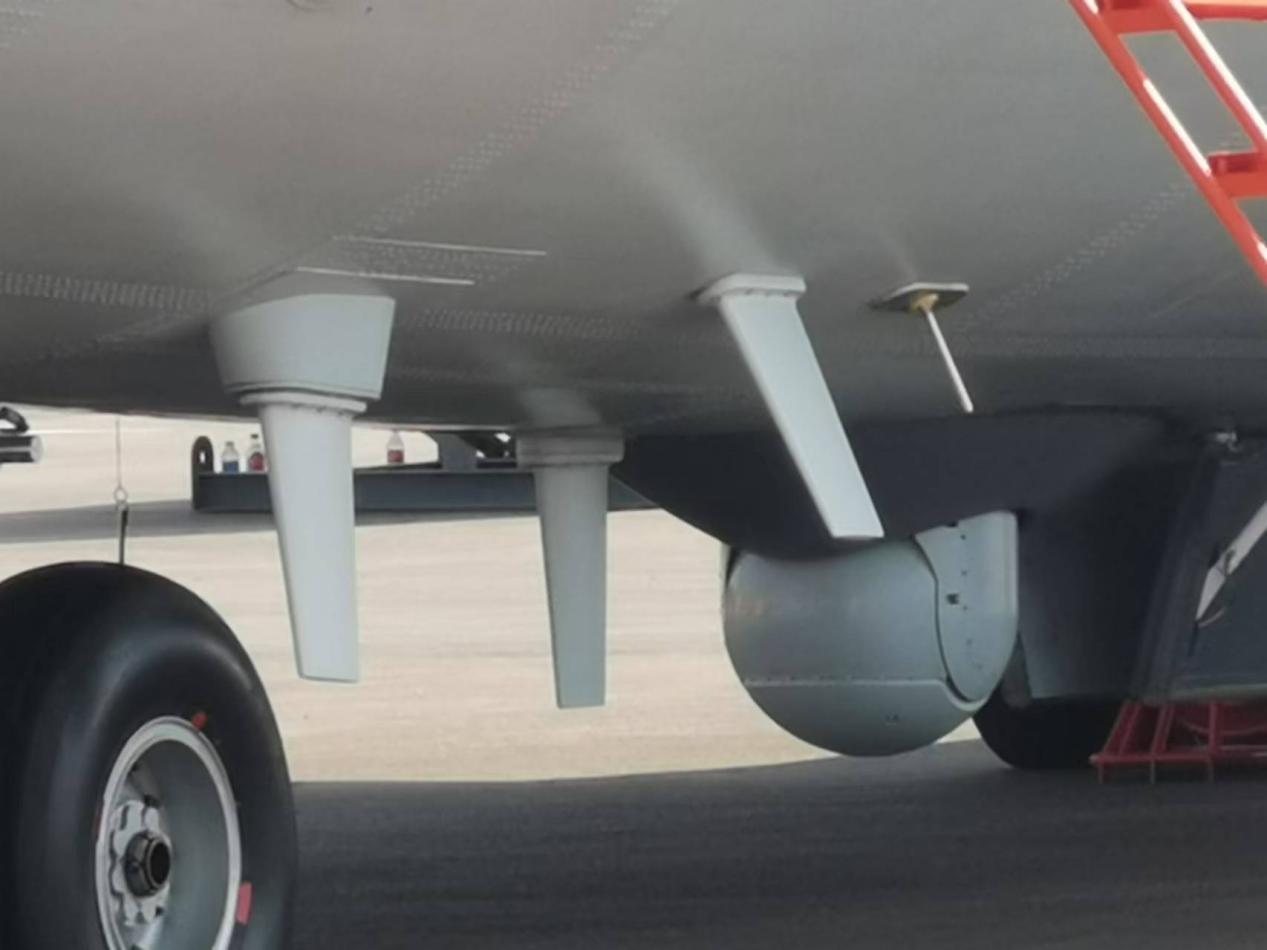 机腹下方配备的光电转塔,可用于探测通气管状态航行或水面航行的潜艇以及水面舰艇。