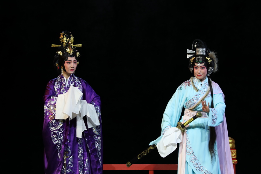 鲁肃饰演两次出使西域的博望候张骞由,从唱念到身段,在彰显麒派特色同时借鉴不同的老生流派,突出人物的仁慈之心,狱中一场从误解到互诉衷肠的戏,抑扬顿挫的念白和演唱极具张力。布衣拜相的公孙弘由言派老生、国家一级演员陈圣杰饰演,一生持重的他在生命垂危之际向武帝袒露心声。为了符合年迈老臣的形象,又要烘托起人物情绪点,陈圣杰与唱腔设计李连璧讨论后,以一段“紧拉慢唱”的唱段,展现贤相心志。孙亚军饰演的霍去病白衣飘飘,文武兼备。皇后卫子夫由国家一级演员杨扬饰演,主工花旦的她挑战大青衣角色,对武帝关怀备至,待张骞的匈奴妻子须兰亲如姐妹。青年演员刘韩希烨饰演的须兰性格炽热,甘愿为爱人赴汤蹈火。