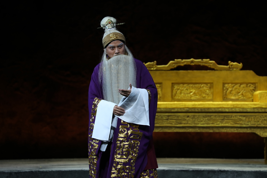 “此时的刘彻踌躇满志,有皇帝的沉稳,又有年轻人的冲劲,心怀天下,心怀百姓,这几种气质不能偏颇。只演他的‘沉’,可能死气沉沉,只演他的傲气,又忽略他对百姓的重视。”傅希如分析,“《武帝刘彻》唱腔、念白、一举一动有京剧程式化元素,又必须为人物服务。从行当来讲,老生偏于沉稳,武生偏于武气,塑造刘彻,既有老生又有武生、小生痕迹。”
