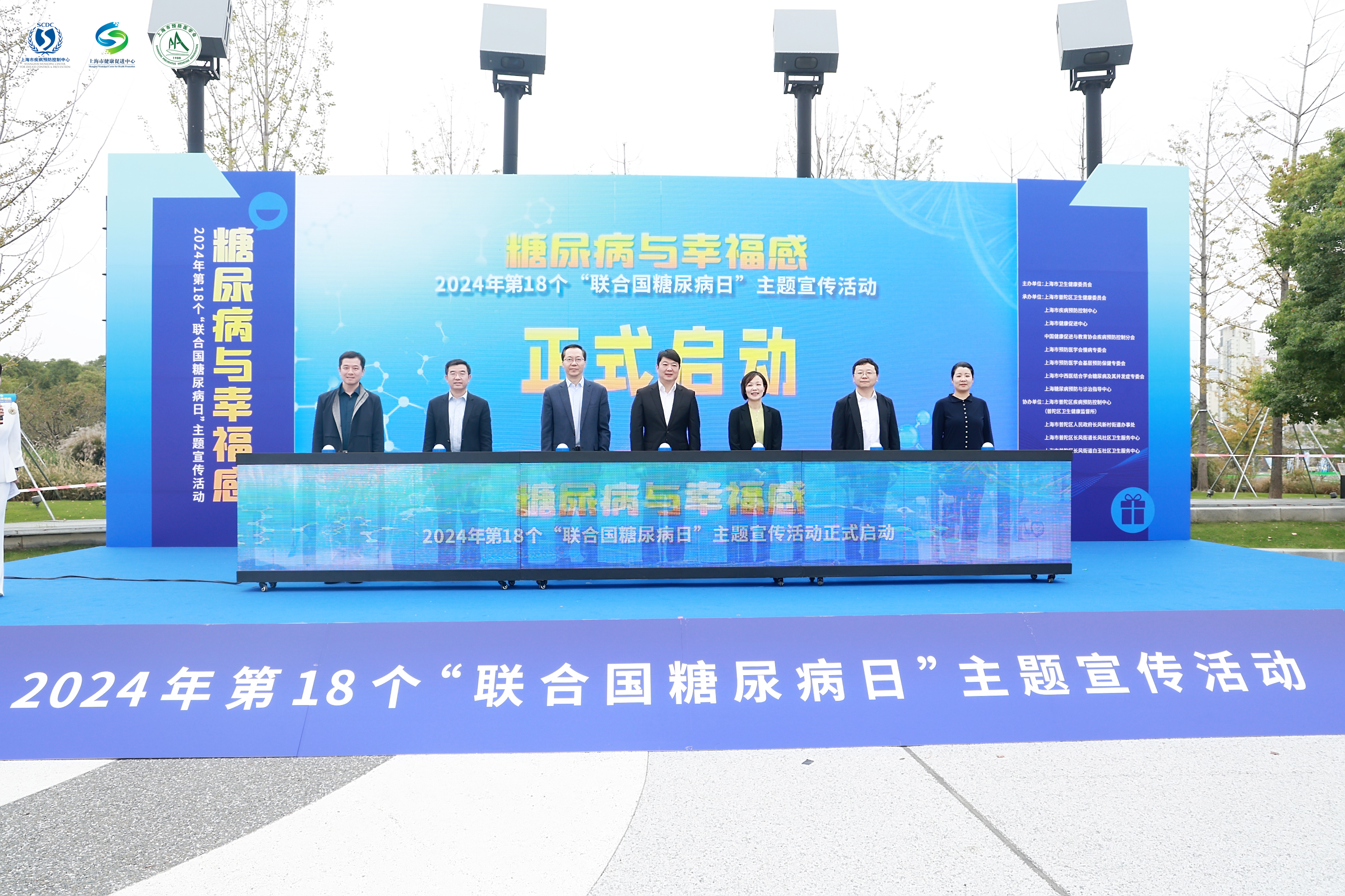 11月14日,上海市卫生健康委员会在普陀区半马苏河公园举办市级主题宣传活动。活动现场邀请了来自市第六人民医院、同济医院、普陀区中心医院等医疗机构的内分泌科专家为市民提供义诊咨询,现场同时提供血糖、血压、体脂、握力等免费测量服务,还有常见食品热量墙展示、趣味知识问答、动感单车游戏等互动活动。