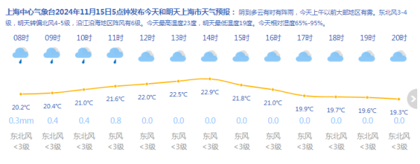 受辐射降温影响,申城今天上午以前大部分地区有雾,部分郊区能见度不足200米,大家注意道路交通安全。今天白天雨势较昨夜减弱,阴到多云有时有阵雨,东北风3~4级,全天温差较小,在19~23℃,体感偏暖湿。