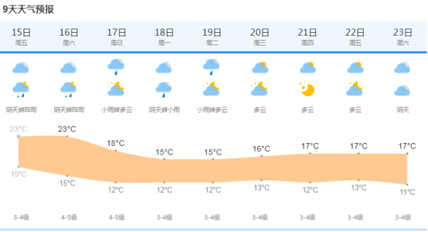 明天申城依旧处在暖区中,阴到多云有短时阵雨,气温在19~23℃。随着强冷空气南下,周日后期起申城雨水逐渐收敛,气温将明显下降,预计下周最高气温又将跌至“1”字头。未来几天,申城气温起伏较大,还请大家根据气温变化及时调整着装,谨防感冒。