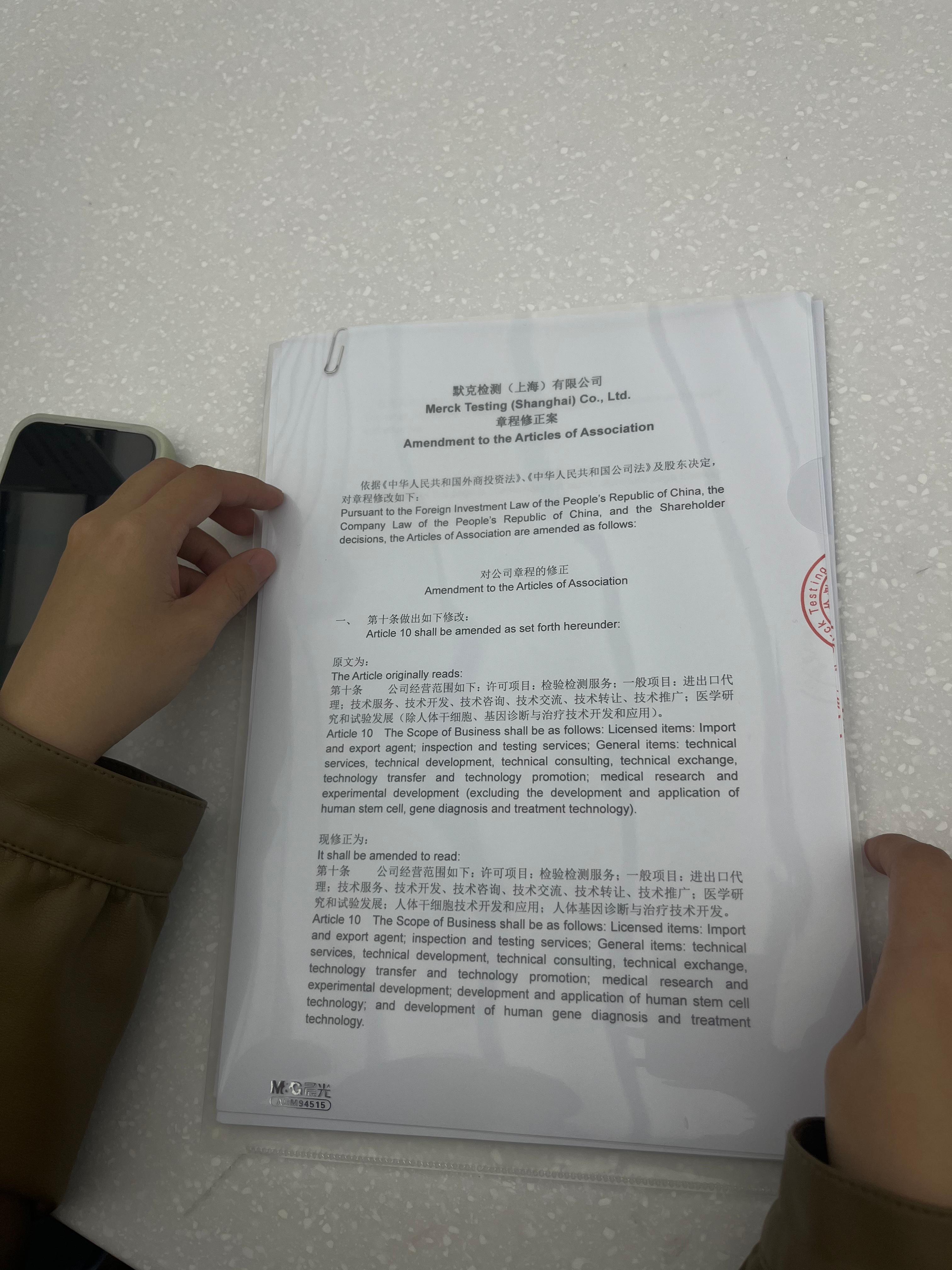 默克检测变更营业范围。澎湃新闻记者 邹娟 摄