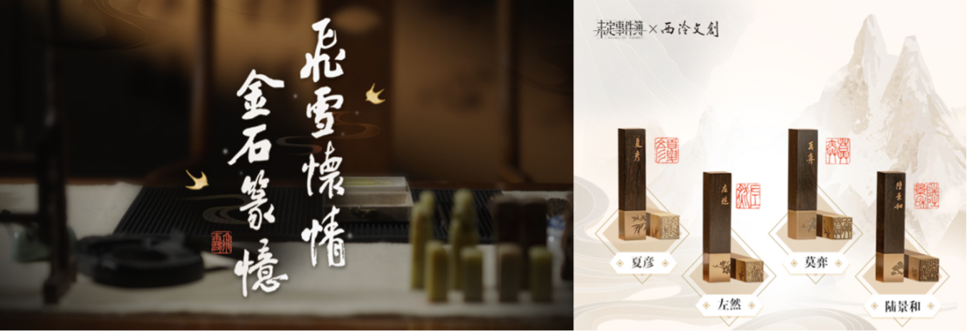 在今年的展区内,米哈游将全面展示其在“游戏+”文化赋能方面的创新探索,包括《原神》“流光拾遗之旅”、《崩坏:星穹铁道》“造物大赛”以及《未定事件簿》与西泠印社的文创联动项目。展示将以静态作品展览为主,着重呈现米哈游通过借助互动性更强、触达面更广的数字技术,让传统文化“火”起来与“潮”起来,实现更现代的内容表达、更独特的内容创新。以《未定事件簿》为例,米哈游推出篆刻“夏彦”“左然”“莫弈”“陆景和”等男主姓名的印章,并全平台上线了非遗文化金石篆刻纪录片,向玩家展示非遗文化“金石篆刻”,让非遗文化变得“可感可知”。
