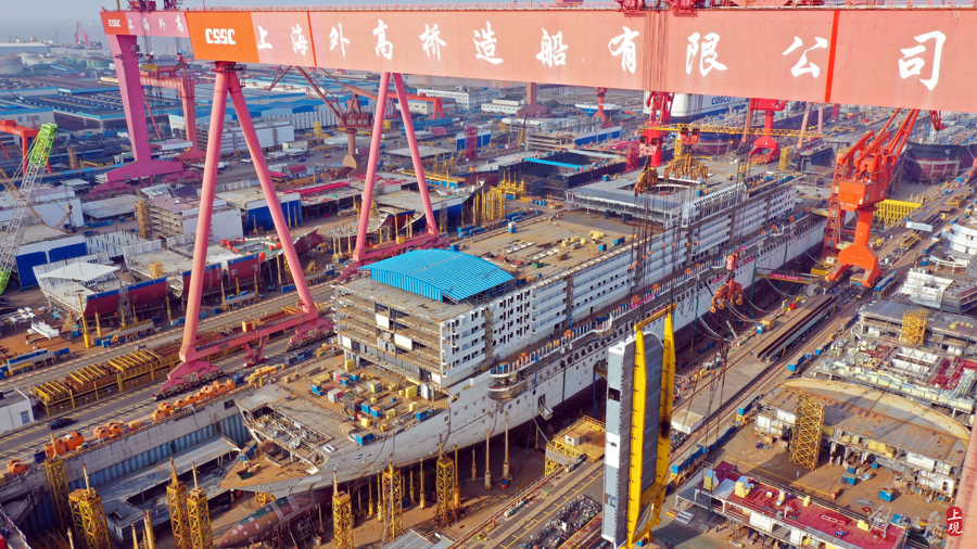被誉为造船业“皇冠明珠”之一的大邮轮,约含2500万个零部件,是大飞机的10倍、高铁的50倍,在成功建造第一艘的基础上,积累的成熟经验开始助力加快建造,外高桥造船已将第二艘邮轮建造至结构贯通的五分之四,计划明年1月实现全船结构贯通。
