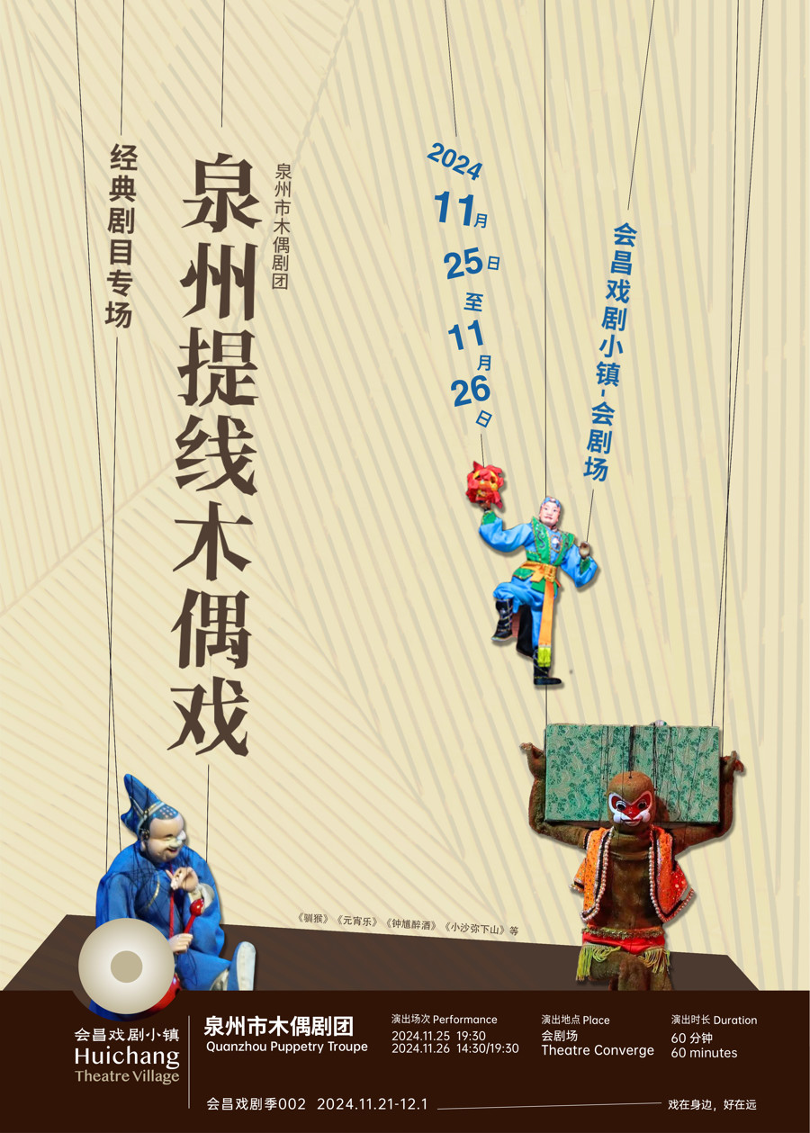 除了种类丰富的戏剧作品,《泉州提线木偶戏经典剧目专场》《赣南采茶戏折子戏专场》呈现独具韵味的非遗技艺。会昌戏剧季002期间每天还有丰富的小镇环游记,如迪迪埃-赛隆剧团《行走的膨胀人》、法国“明天我们改变一切剧团”《鸟人与他的奇美拉乐队》。