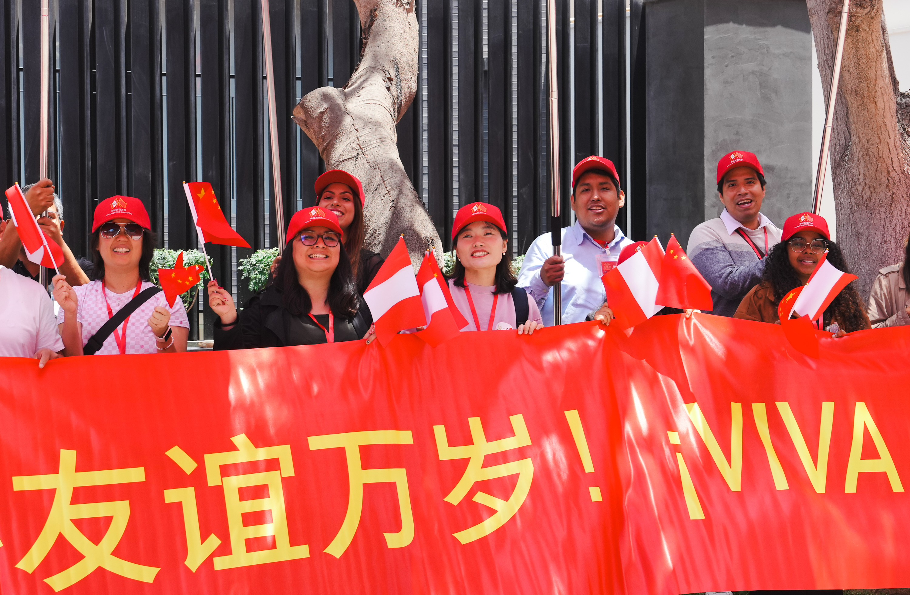 秘鲁民众自发聚集道路两旁,挥手致意表示欢迎。