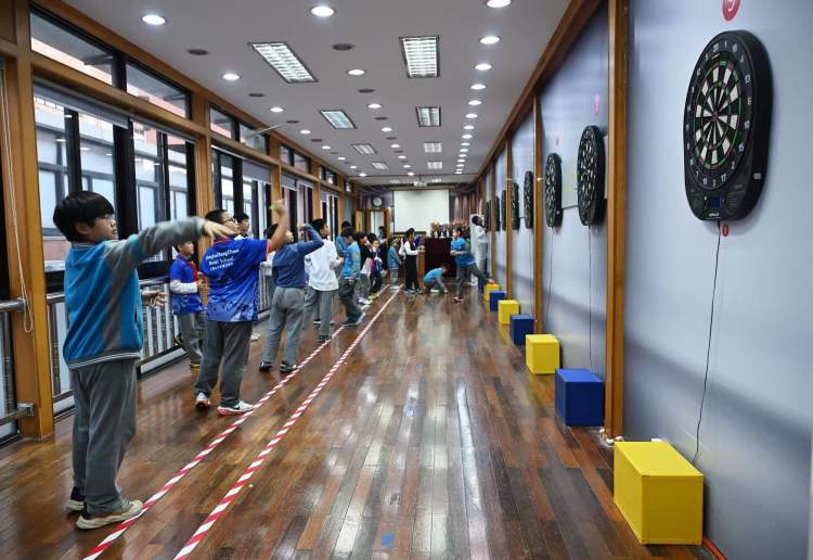 相较于传统的跑、跳、投和球类项目,飞镖项目是一项偏静态的项目,而这也正是同洲模范学校小学部副校长赵蔚芳看中的飞镖项目特质——学生成长宜动静结合,好动停不下来的孩子,飞镖可以帮助其稳定性子,提升专注力,从而改变孩子的学习表现。
