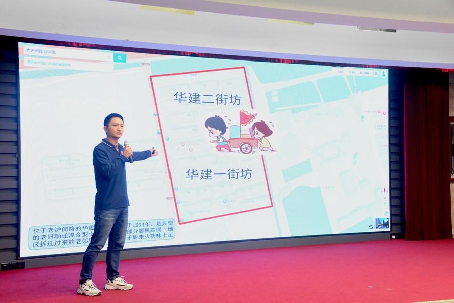 在日前举办的华泾镇“人民城市人民建,人民故事人民讲”宣讲主题日活动上,孙麒带大家回顾了华建小区如何从“停车老大难”变为居民舒适港湾的全过程。