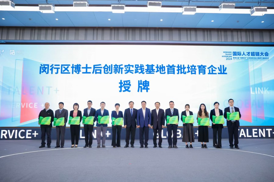 大会为首批12家闵行区博士后创新实践基地培育单位授牌。作为上海市首批博士后创新实践基地挂牌单位,闵行充分发挥基地对推动“产学研”一体化的阵地作用,在实践中探索博士后培育“闵行模式”,通过“培育—入驻—设站”全链条加速支撑,鼓励引导企业招揽博士后创新人才,涵养战略性人才力量源头活水,三年内力争实现基地培育企业达100家。