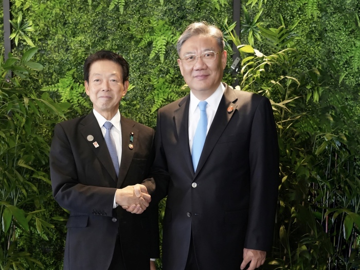11月14日,商务部部长王文涛在秘鲁利马会见日本经济产业大臣武藤容治,双方就中日经贸关系交换意见。王文涛表示,双方应共同落实好两国领导人重要共识,加强政策沟通对话,全面推进经贸领域战略互惠关系。