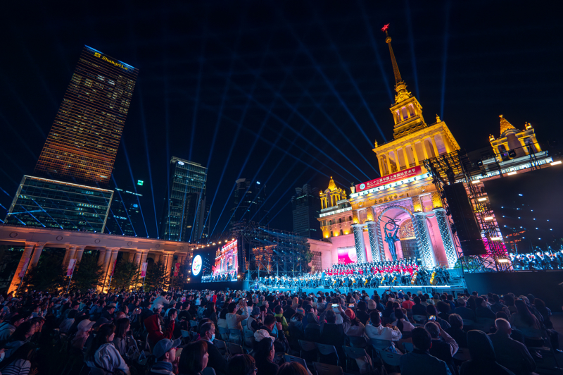 上海展览中心广场,在指挥家许忠的带领下,上海国际艺术节节日乐团奏响贝多芬交响乐的雄浑乐章 董天晔 摄