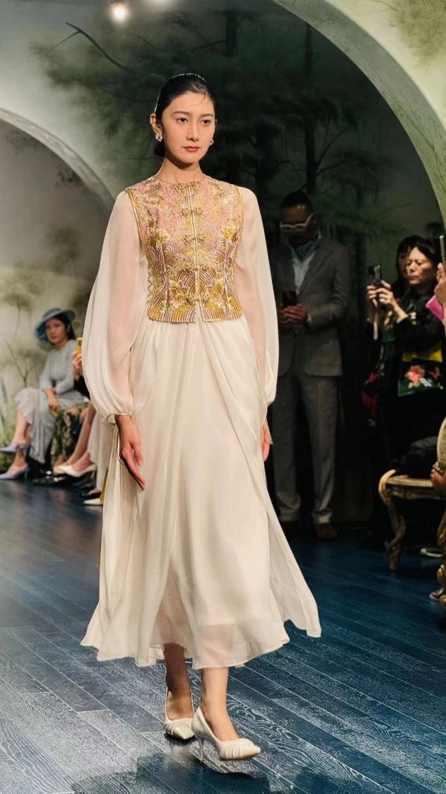 郭培将其对美学的独到了解也融入到了会馆的空间设计里。内境外化,是她⼀直以来尊崇的理念,亦是她对内心世界的深邃探索。展示空间区域,原始岩面墙壁与闪耀的银色波纹镜面吊顶相映成趣,交织出天空与河流倒置的禅意景象。由青年艺术家创作的天使之翼水晶座椅伫立其中,为整个空间增添了无限的生机与活力。更令人瞩目的是,郭培的作品“极乐岛”巴黎高定大秀款系列也将在除巴黎、洛杉矶外第三次全世界范围内公开亮相,通过预约,能不出国门可以近距离观赏到凝聚了千万个工时的高定作品的魅力。(小雪)