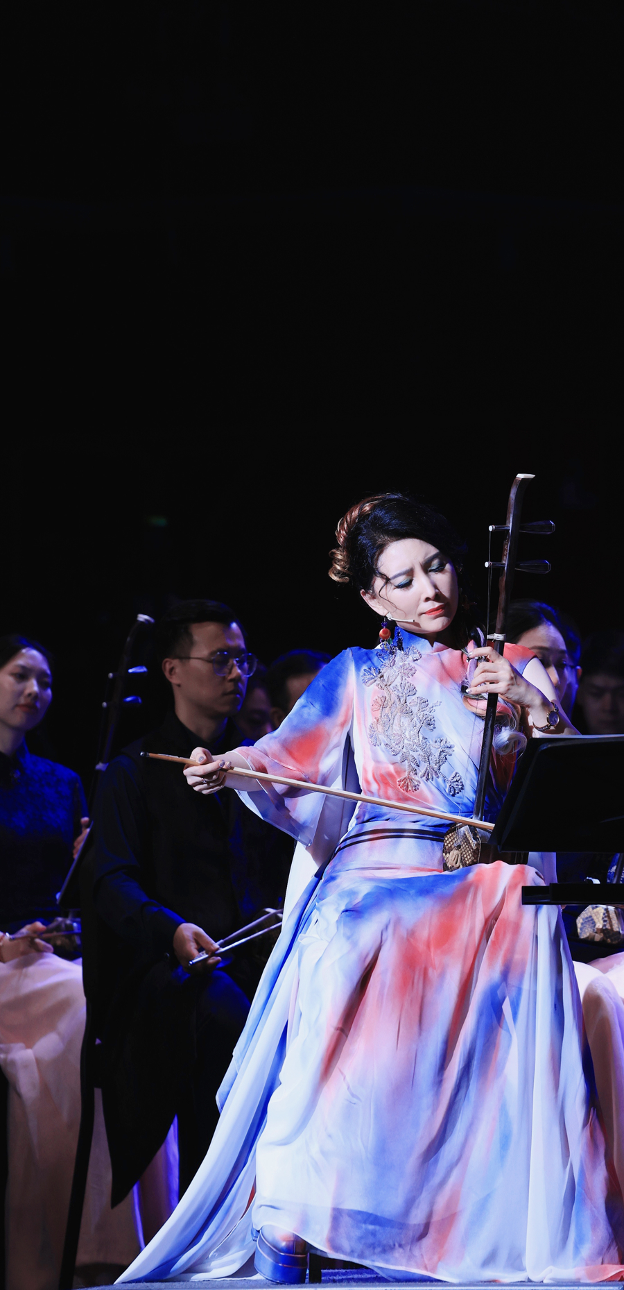 演出开场的《月夜》是马晓辉的保留作品之一,由刘天华作曲、顾冠仁编配。马晓辉独到多变的演奏手法和音色处理,师承其恩师王乙的江南门派,也融入了她对音乐特殊情感的理解,使作品更添唯美的画面感。她说:“《月夜》是刘天华百年前的作品,曾经,二胡被认为是一件民间乐器,难登大雅之堂,刘天华为二胡鸣不平,创作了10首作品,第一首就是《月夜》。这部作品非常美,也激励着我的二胡传习之路。”