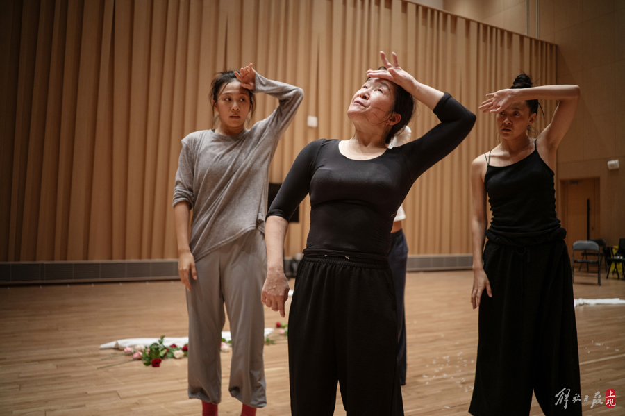 10月27日,诗人余秀华和舞蹈家们在苏州湾大剧院的排练厅为她们的舞蹈作品《万吨月色》进行排练。这部以余秀华的诗歌为蓝本,融合了多媒体艺术手段的先锋舞蹈作品于11月15日在上海Young剧场首演。